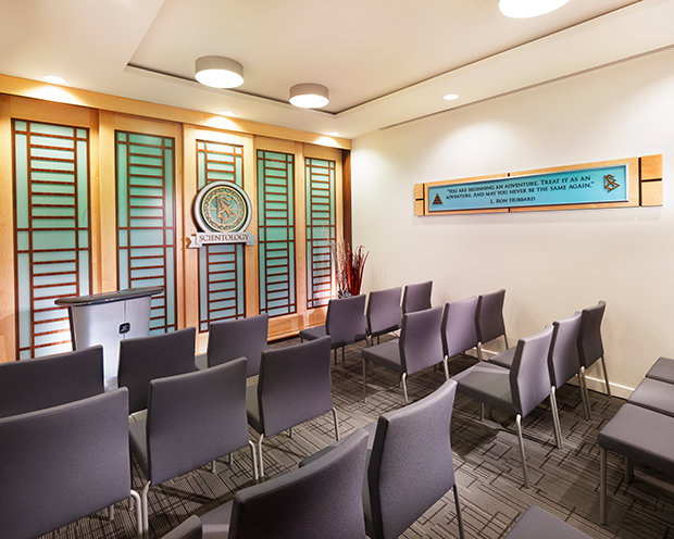 The Church’s Chapel provides for Scientology congregational gatherings, including Sunday Services, Weddings and Naming Ceremonies—as well as a host of community-wide events open to members of all faiths. The new Church further includes multiple seminar rooms and classrooms, in addition to dozens of rooms for Scientology auditing (spiritual counseling).