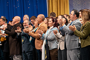 Members of the IAS and guests stand in recognition of the lifesaving and lives-changing work of the Scientology Volunteer Ministers over the past year.
