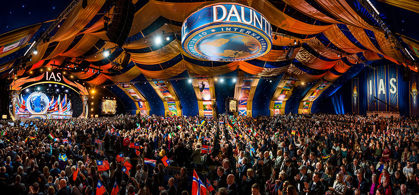 Elegance and splendor frame the celebration as members of the IAS converge from six continents upon Saint Hill, the historic West Sussex home of Scientology Founder L. Ron Hubbard. Gliding along the red carpet, the crowd enters the Grand Marquee with joyful anticipation, flags from around the globe soaring high, hearts alight as all eyes turn toward the stage.